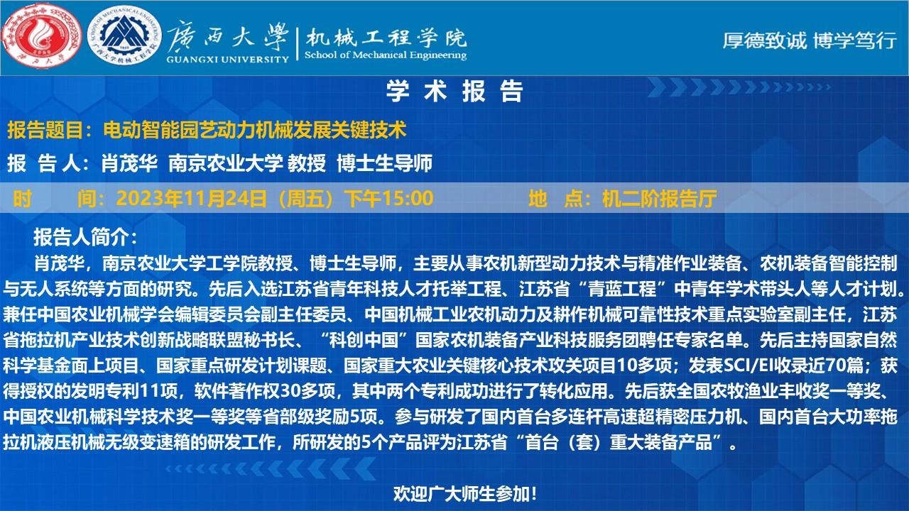 【機(jī)械工程學(xué)院學(xué)術(shù)報告】 電動智能園藝動力機(jī)械發(fā)展關(guān)鍵技術(shù)