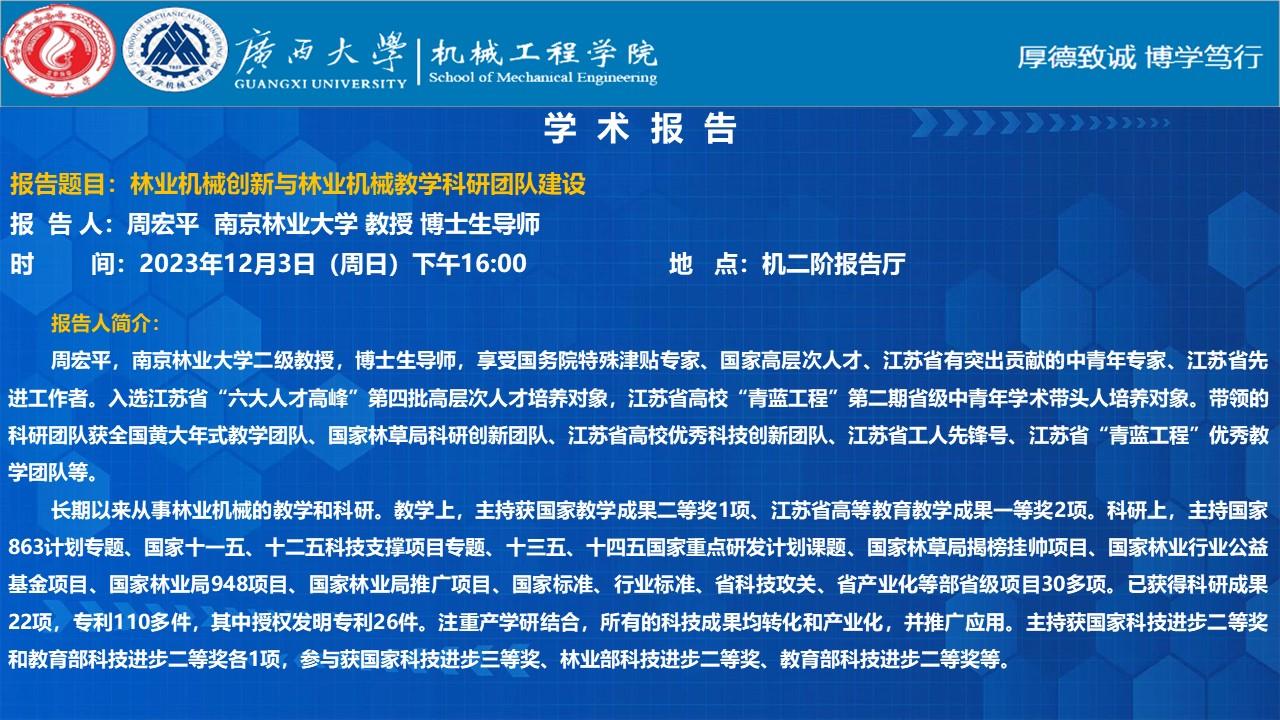 【機(jī)械工程學(xué)院學(xué)術(shù)報(bào)告】林業(yè)機(jī)械創(chuàng)新與林業(yè)機(jī)械教學(xué)科研團(tuán)隊(duì)建設(shè)