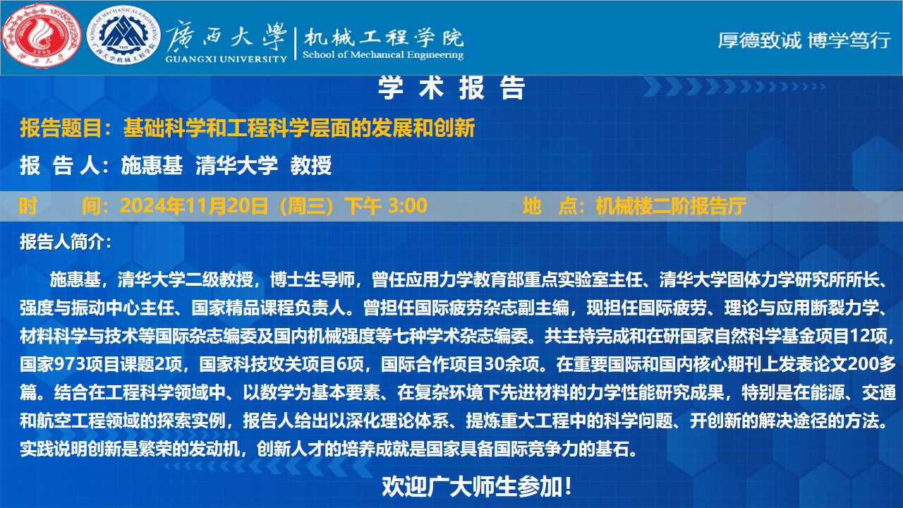 【機(jī)械工程學(xué)院學(xué)術(shù)報(bào)告】基礎(chǔ)科學(xué)和工程科學(xué)層面的發(fā)展和創(chuàng)新