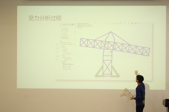 賽后,機械學(xué)院黃承培同學(xué)也分享了他參加此次比賽的感受。和其他同學(xué)一樣,在這次比賽當(dāng)中,收獲最大的就是對于力學(xué)知識的深入學(xué)習(xí)和掌握。同時,對于黃承培來說,取得第一名的好成績也少不了學(xué)長學(xué)姐的幫助,由塔吊結(jié)構(gòu)到增加三角形的結(jié)構(gòu)少不了學(xué)長的建議。他還說到,完成作品的時候一定要充滿耐心,要經(jīng)得住多次失敗和改進(jìn)。當(dāng)然,學(xué)會使用solidworks等現(xiàn)代化工具也會是成功的重要一點。