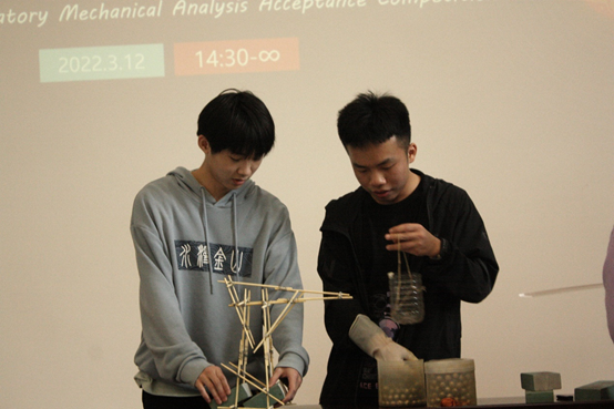 經(jīng)過兩個小時的激烈角逐,按照模型的最終承重大小評比出了前十名。此后,這十名選手為在場觀眾講解了其創(chuàng)作經(jīng)歷,或是從生活當(dāng)中得出靈感,或是實驗出真理,亦或是尋求他人的幫助,巧妙利用團(tuán)隊的力量,總之整場比賽帶來的挑戰(zhàn)讓同學(xué)們更好的成長了。
