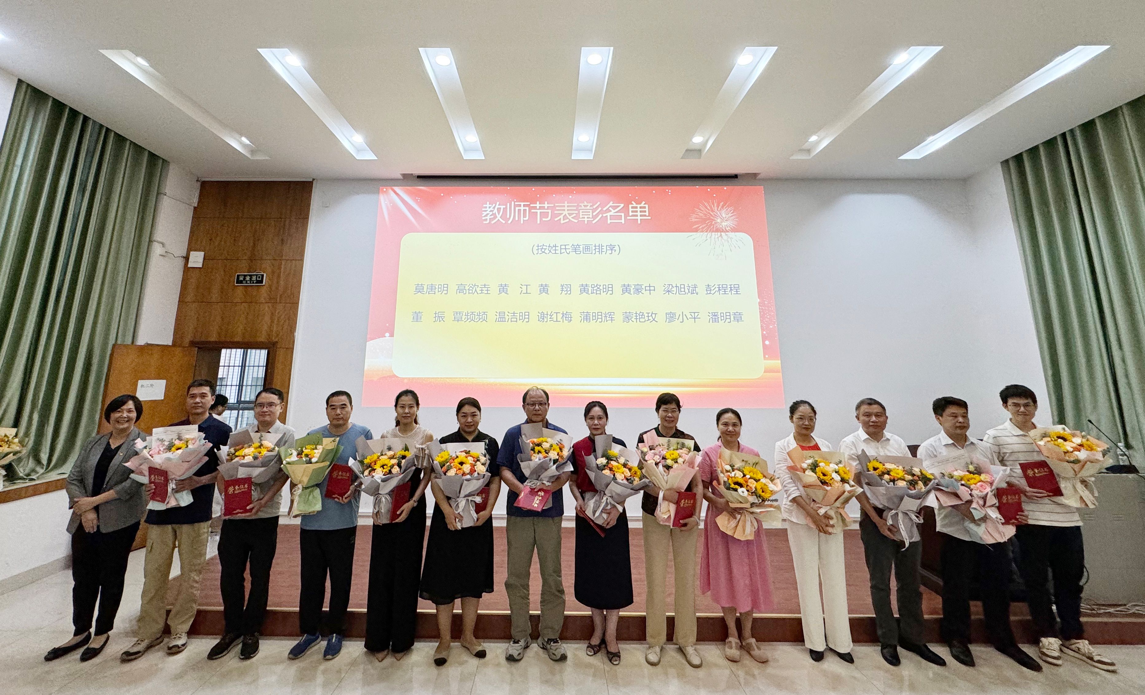 盧嬋江書記代表學(xué)院向全院教職工致以節(jié)日的問候,向受到表彰的教職工表示祝賀。今年我院蒙艷玫教授獲評(píng)全國優(yōu)秀教師,賀德強(qiáng)教授獲評(píng)自治區(qū)模范教師,是學(xué)院多年來注重師資隊(duì)伍建設(shè)的成果,學(xué)院致力于培養(yǎng)造就一支師德高尚、業(yè)務(wù)精湛、結(jié)構(gòu)合理的高素質(zhì)教師隊(duì)伍。她指出,學(xué)院正處在高質(zhì)量發(fā)展向上突圍的關(guān)鍵時(shí)期,希望廣大教職員工能夠凝心聚力,砥礪前行,開啟學(xué)院高質(zhì)量發(fā)展的新征程。