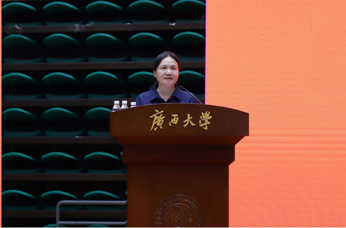 教師代表發(fā)言環(huán)節(jié),陳勇教授代表全體教師向同學(xué)們致以熱烈的歡迎,并對(duì)大家寄予深切期望。他指出,機(jī)械工程作為支撐大國(guó)重器的核心力量,是書(shū)寫(xiě)機(jī)械智能強(qiáng)國(guó)故事的關(guān)鍵載體,新時(shí)代的機(jī)械工程已突破傳統(tǒng)界限,與新材料、人工智能等前沿領(lǐng)域深度融合,這要求同學(xué)們成長(zhǎng)為兼具扎實(shí)專(zhuān)業(yè)功底與開(kāi)闊創(chuàng)新視野的復(fù)合型人才。大學(xué)是探索未知的殿堂,他希望同學(xué)們始終以嚴(yán)謹(jǐn)態(tài)度對(duì)待每一門(mén)課程、每一次實(shí)驗(yàn),在理論鉆研與實(shí)踐操作中真切感受工程之美?!巴瑢W(xué)們正生逢一個(gè)偉大的時(shí)代,廣西正處在改革發(fā)展的蓬勃進(jìn)程中。”他勉勵(lì)大家,潛心鉆研學(xué)業(yè),以專(zhuān)業(yè)能力回應(yīng)時(shí)代需求,用青春力量為國(guó)家建設(shè)添磚加瓦。