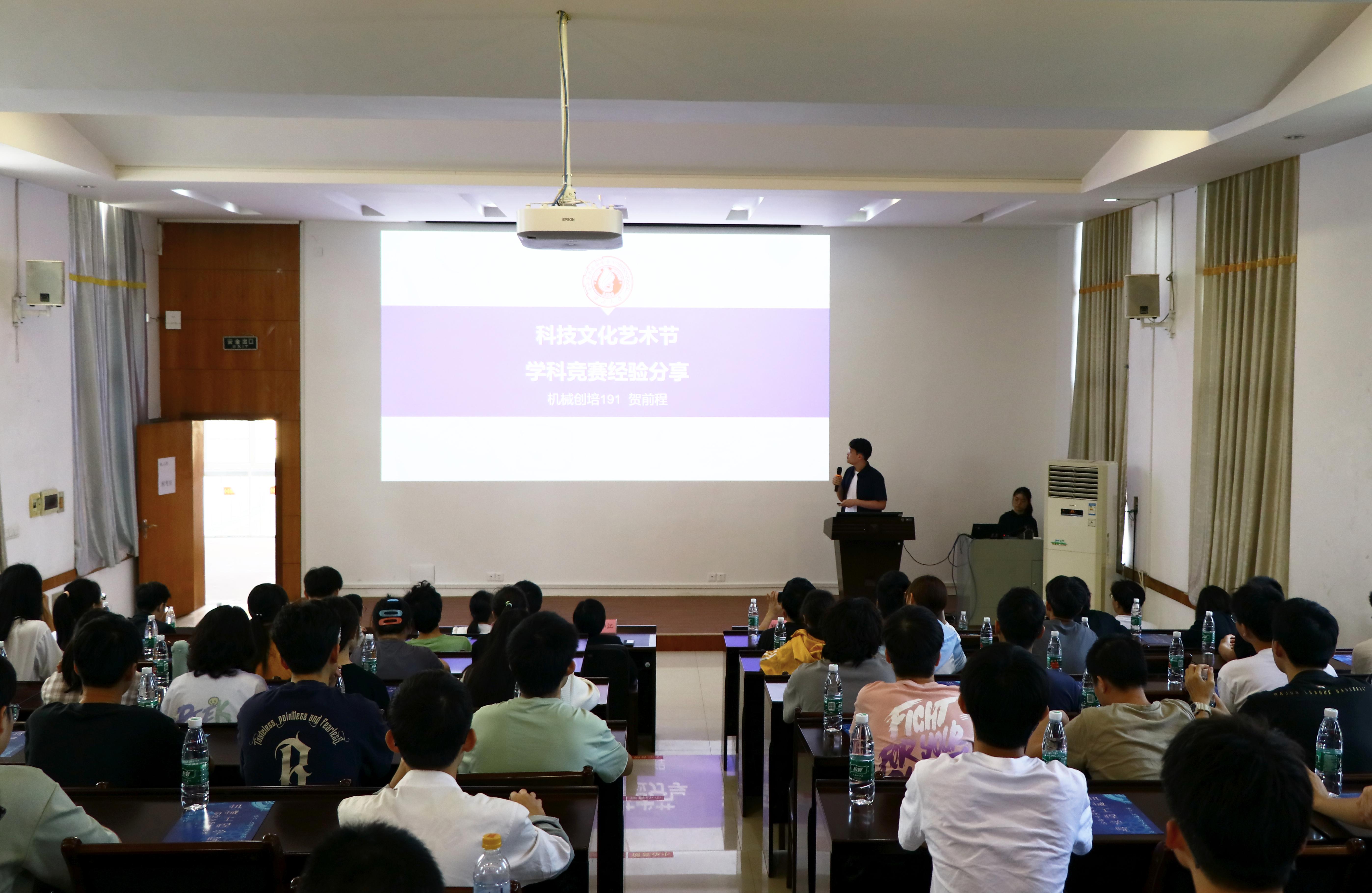 隨后,還進行了科技文化藝術節(jié)的第一個子活動——“青春引路人”經驗分享會,2020級碩士研究生卓能聰為大家分享學科競賽經驗,從撰寫商業(yè)計劃書、制作競賽PPT、跨學科交流合作等方面深入淺出地介紹學科競賽的各個方面。2019級本科生賀前程向同學們介紹本科期間參加的各類學科競賽,并表示要在競賽中取得好成績,一是要“學好當下的專業(yè)課,打下良好專業(yè)基礎”;二是“要積極參加科研活動、競賽,在活動中學會與同學互相合作,彼此成就。”