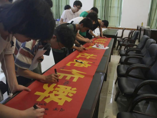 現(xiàn)場同學(xué)們共同在倡議誠信考試的橫幅上簽下自己的名字,以此表明自己的決心和信念,會(huì)議圓滿結(jié)束。