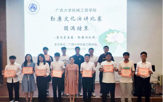 為深入學(xué)習(xí)貫徹習(xí)近平新時代中國特色社會主義思想,弘揚中華優(yōu)秀傳統(tǒng)文化,營造學(xué)校風(fēng)清氣正,勤懇廉潔的良好教育生態(tài)和育人環(huán)境,5月21日,機械工程學(xué)院“清風(fēng)育美德,勤廉潤校園”演講比賽決賽于學(xué)院機二階舉行。由學(xué)院黨委副書記黃路明、紀委委員溫潔明、團委副書記鄭東、輔導(dǎo)員李華、學(xué)生會陳卿杰同學(xué)擔(dān)任本次決賽評委。