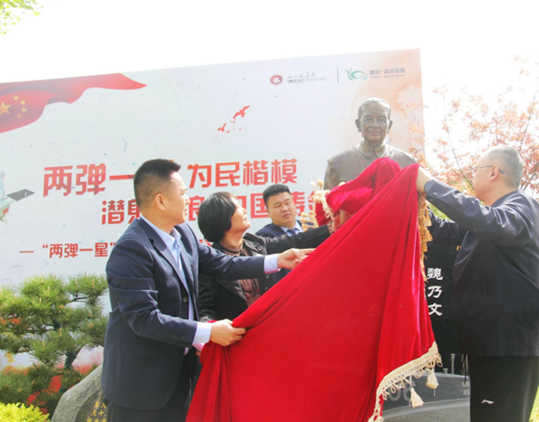 4月15日上午,我院杰出校友、“兩彈一星”科學(xué)家魏乃文紀(jì)念像揭幕儀式在鄭州市御泉園舉行。我院黨委書記盧嬋江、副院長(zhǎng)高欲垚、學(xué)院校友會(huì)執(zhí)行會(huì)長(zhǎng)黃德平等三人代表學(xué)校參加儀式。廣西大學(xué)河南省校友會(huì)代表、魏乃文先生出生地廣西桂平市政府代表、鄭州電視臺(tái)、鄭州晚報(bào)、大河報(bào)、中原網(wǎng)、河南日?qǐng)?bào)、貴港日?qǐng)?bào)記者以及魏乃文先生的家屬共同參加了儀式。