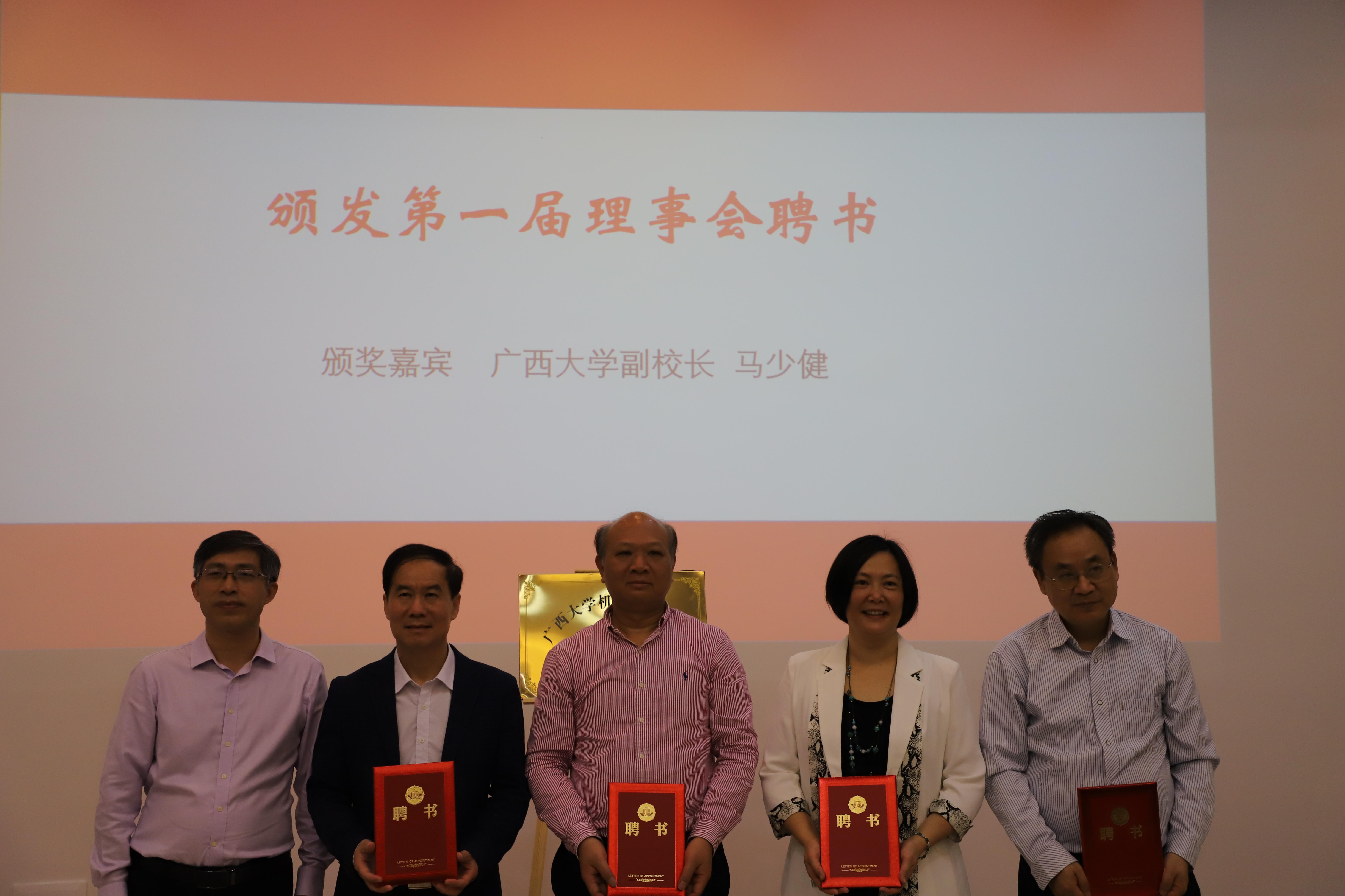 校友會(huì)成立儀式暨揭牌儀式在第二階梯教室舉行。自治區(qū)政協(xié)原副主席林國(guó)強(qiáng)、自治區(qū)政府參事黃健、廣西大學(xué)原副校長(zhǎng)毛漢領(lǐng)等120多位校友出席成立大會(huì),廣西大學(xué)副校長(zhǎng)馬少健代表學(xué)校出席并講話。成立大會(huì)由學(xué)院黨委書記盧嬋江主持。