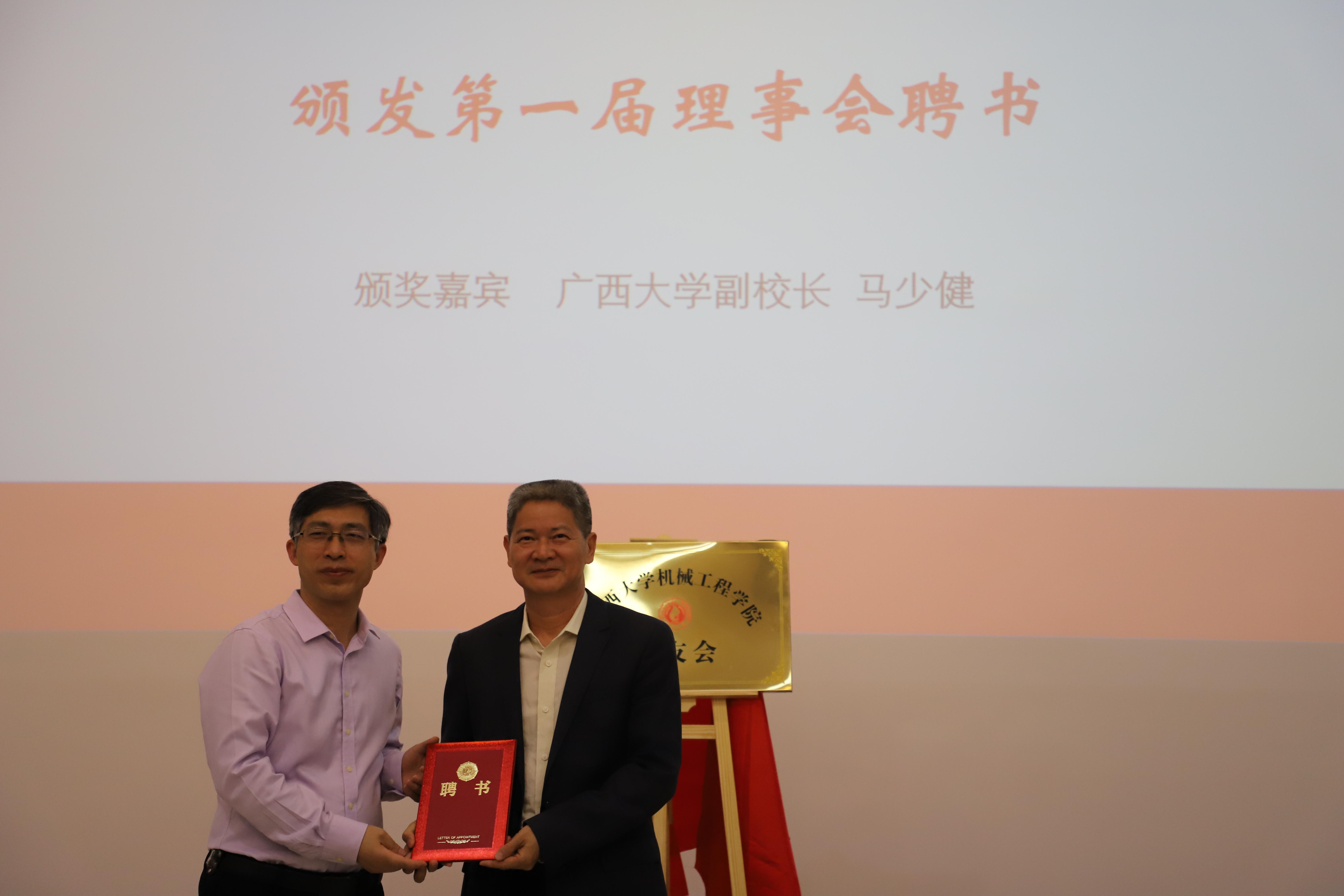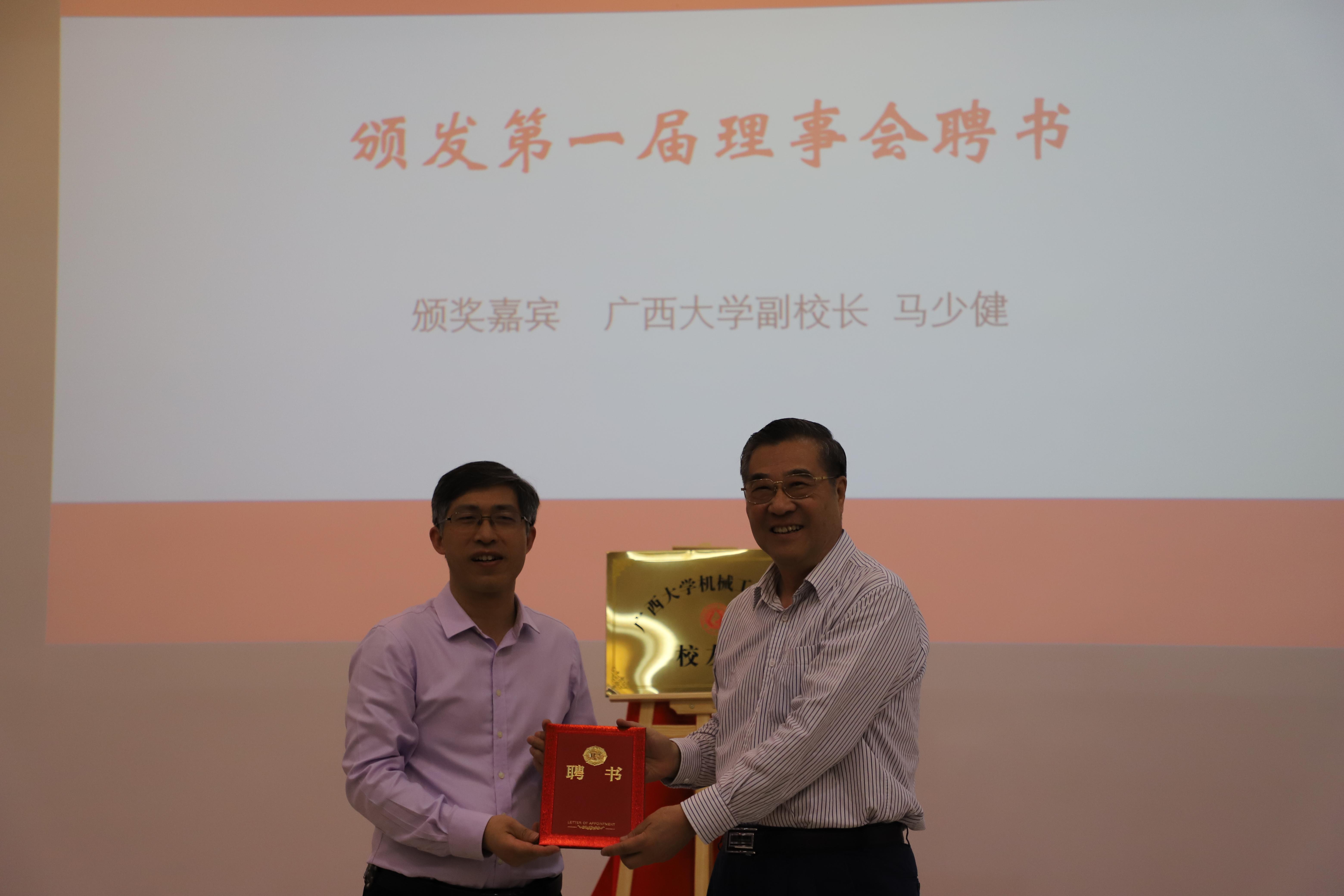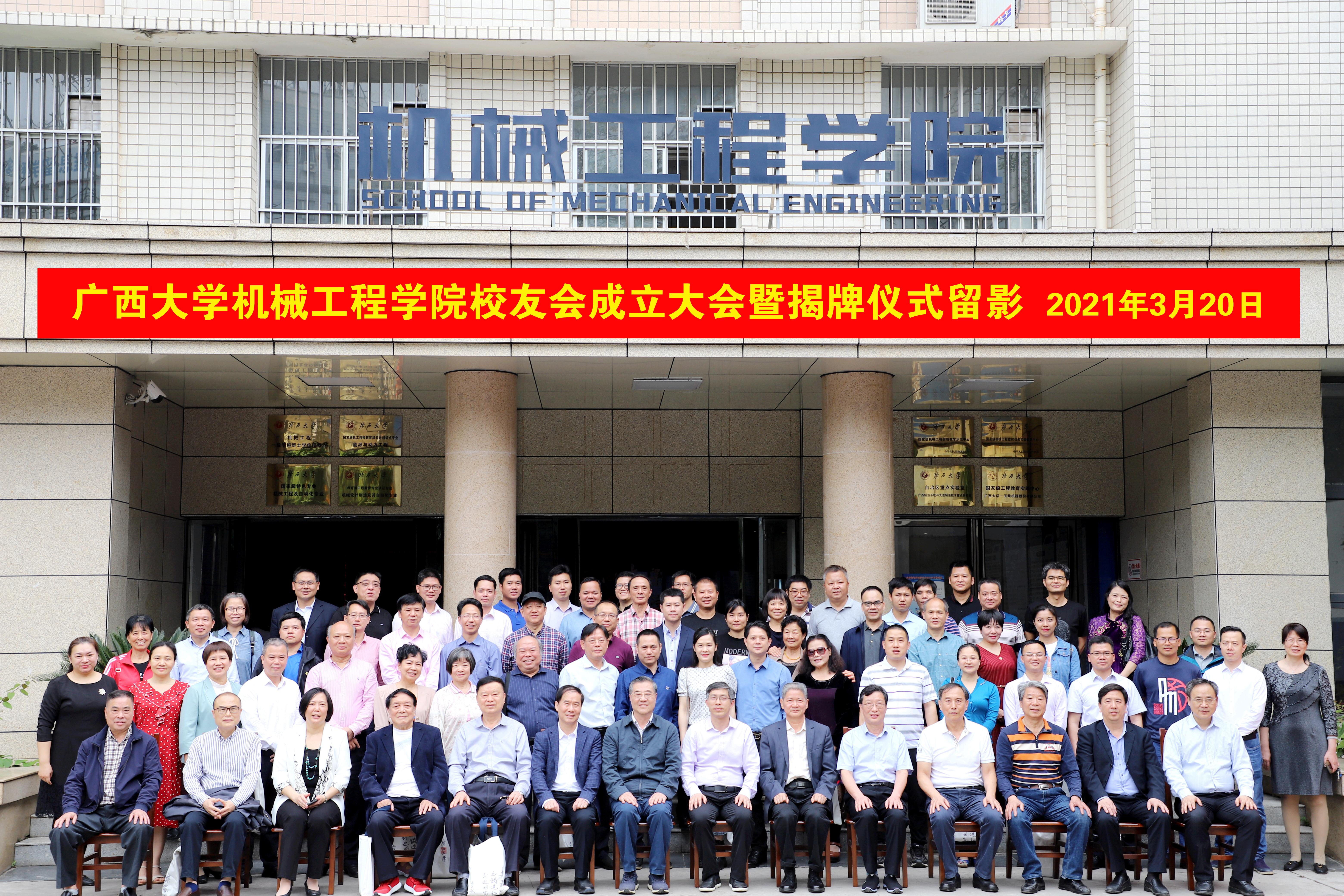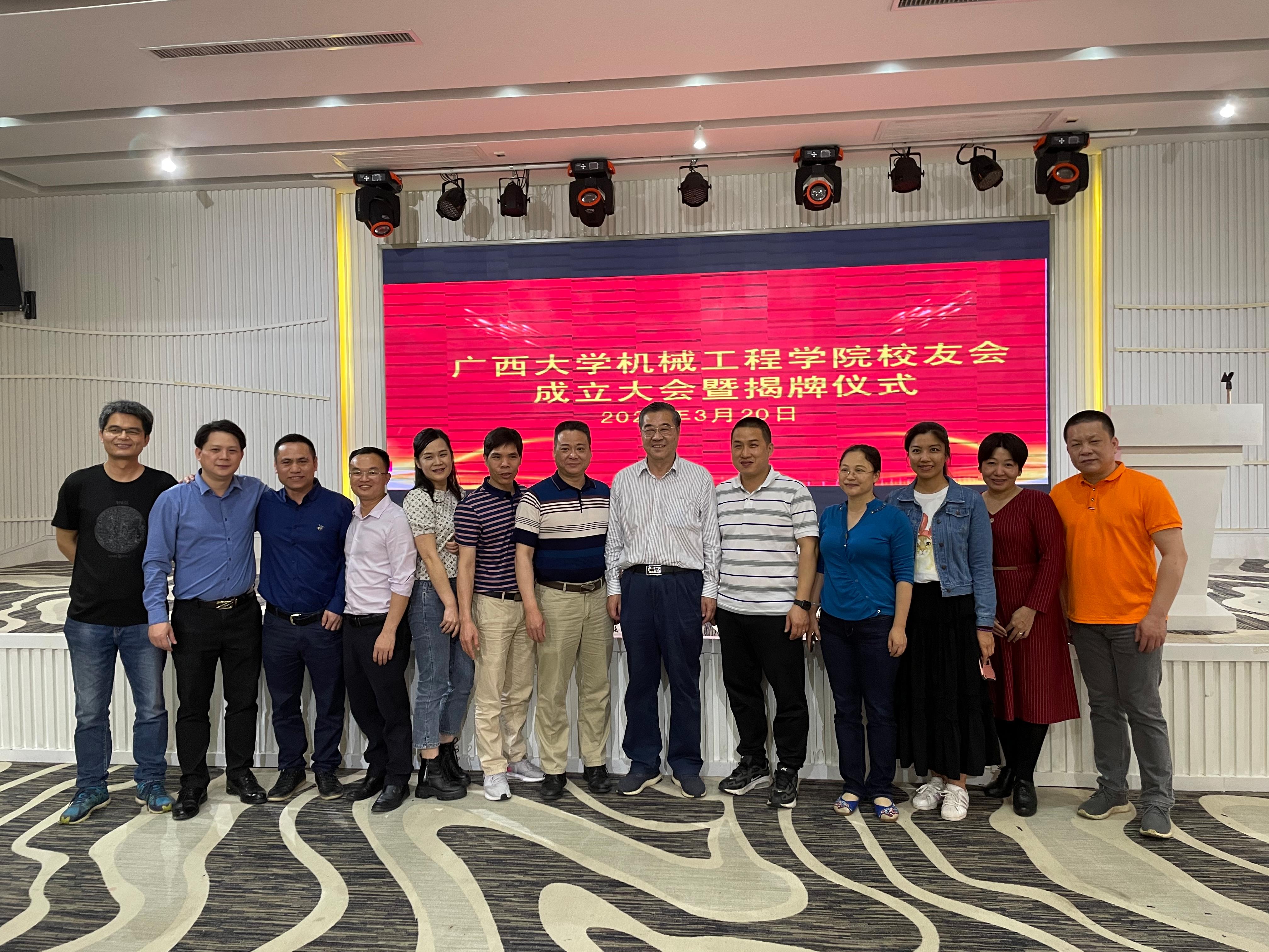 2021年3月20日,在學(xué)校及社會(huì)各界的支持與眾多校友的期盼中,廣西大學(xué)機(jī)械工程學(xué)院校友會(huì)成立儀式暨揭牌儀式在學(xué)院舉行。