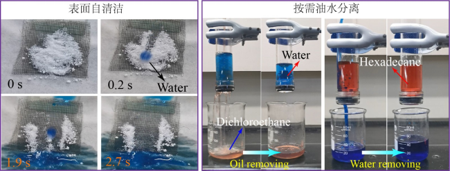 圖2 超疏水表面的自清潔和油水分離應用