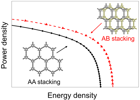 超級(jí)電容器具有充電快、功率高等優(yōu)點(diǎn),在新能源汽車、國防軍事等領(lǐng)域的儲(chǔ)能中扮演著重要角色。但與電池相比,如何在維持其高功率密度的同時(shí)提升能量密度是當(dāng)前超級(jí)電容器研發(fā)的痛點(diǎn)。常見的多孔電極材料(如活性炭、碳化物衍生碳等)可以增加超級(jí)電容器的能量密度,但其無序的離子通道降低了其功率密度;導(dǎo)電多孔二維材料具有周期性的晶體結(jié)構(gòu)和有序的離子通道,有助于提高超級(jí)電容器的充電速度和功率密度,但其比表面積值還相對較低,因此限制了超級(jí)電容器的能量密度;氫取代石墨二炔是一種新型的多孔二維材料,具有比表面積大、物理性質(zhì)穩(wěn)定等優(yōu)點(diǎn);多孔石墨炔獨(dú)特的sp和sp2的碳雜化軌道使其具有可調(diào)節(jié)的電子結(jié)構(gòu)和孔道結(jié)構(gòu),為超級(jí)電容器的機(jī)理研究與性能優(yōu)化提供了理想的平臺(tái),因此在能源儲(chǔ)存領(lǐng)域具有廣闊的應(yīng)用前景。目前研究表明,氫取代石墨二炔具有不同的堆疊方式和不同的金屬性,將會(huì)深刻影響超級(jí)電容器的儲(chǔ)能性能,但對這些拓?fù)浣Y(jié)構(gòu)與金屬性所產(chǎn)生的具體影響及其機(jī)理還不清晰,目前需要學(xué)界深入探索。